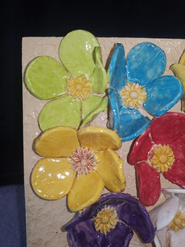 3D relief Daisies wildflowers ceramics panel, Bohemia bouquet, summer flowers, handmade, color therapy, Still life, Special Birthday Gifts, Home Favorites, Fashion Favourites.
