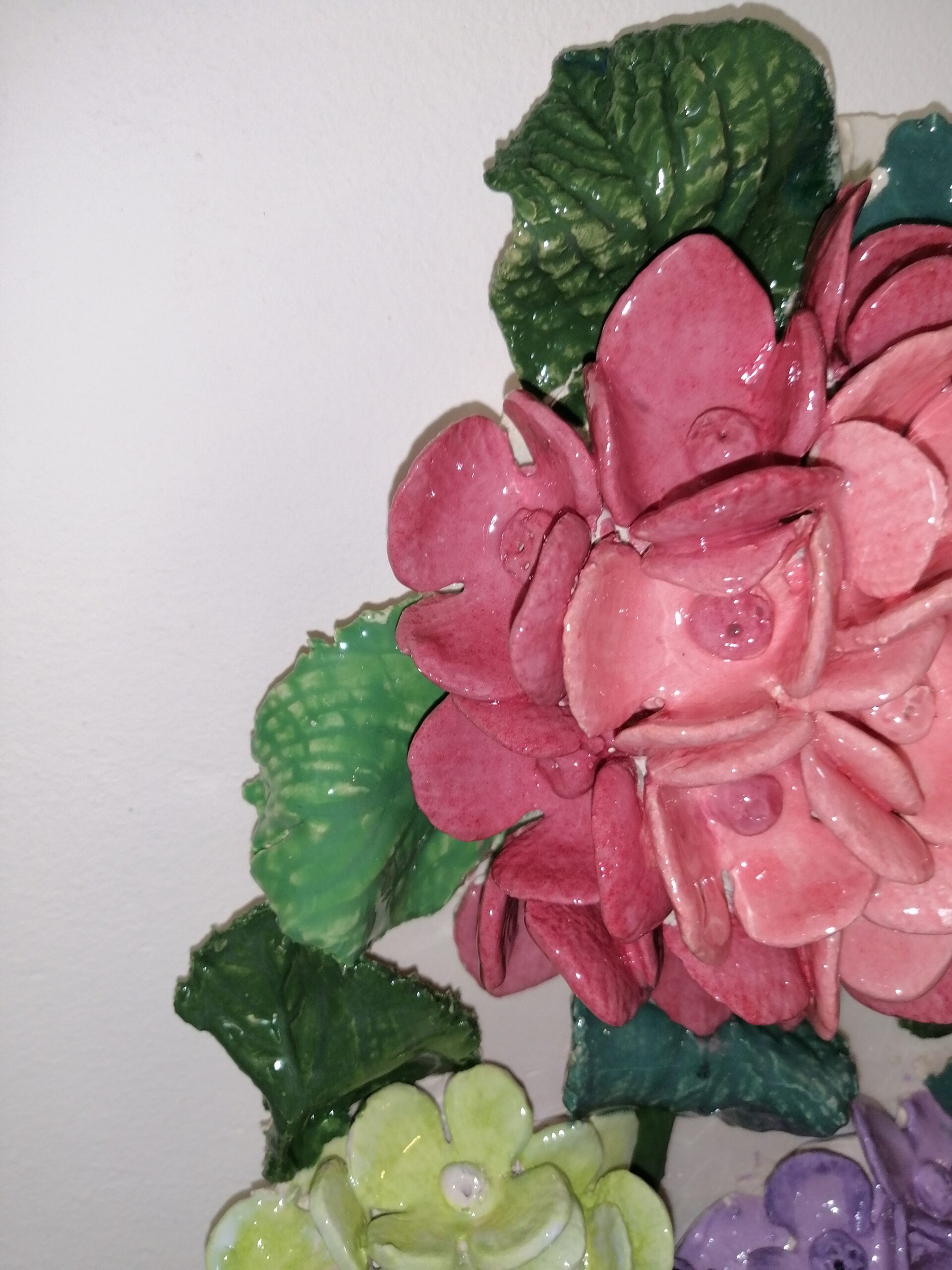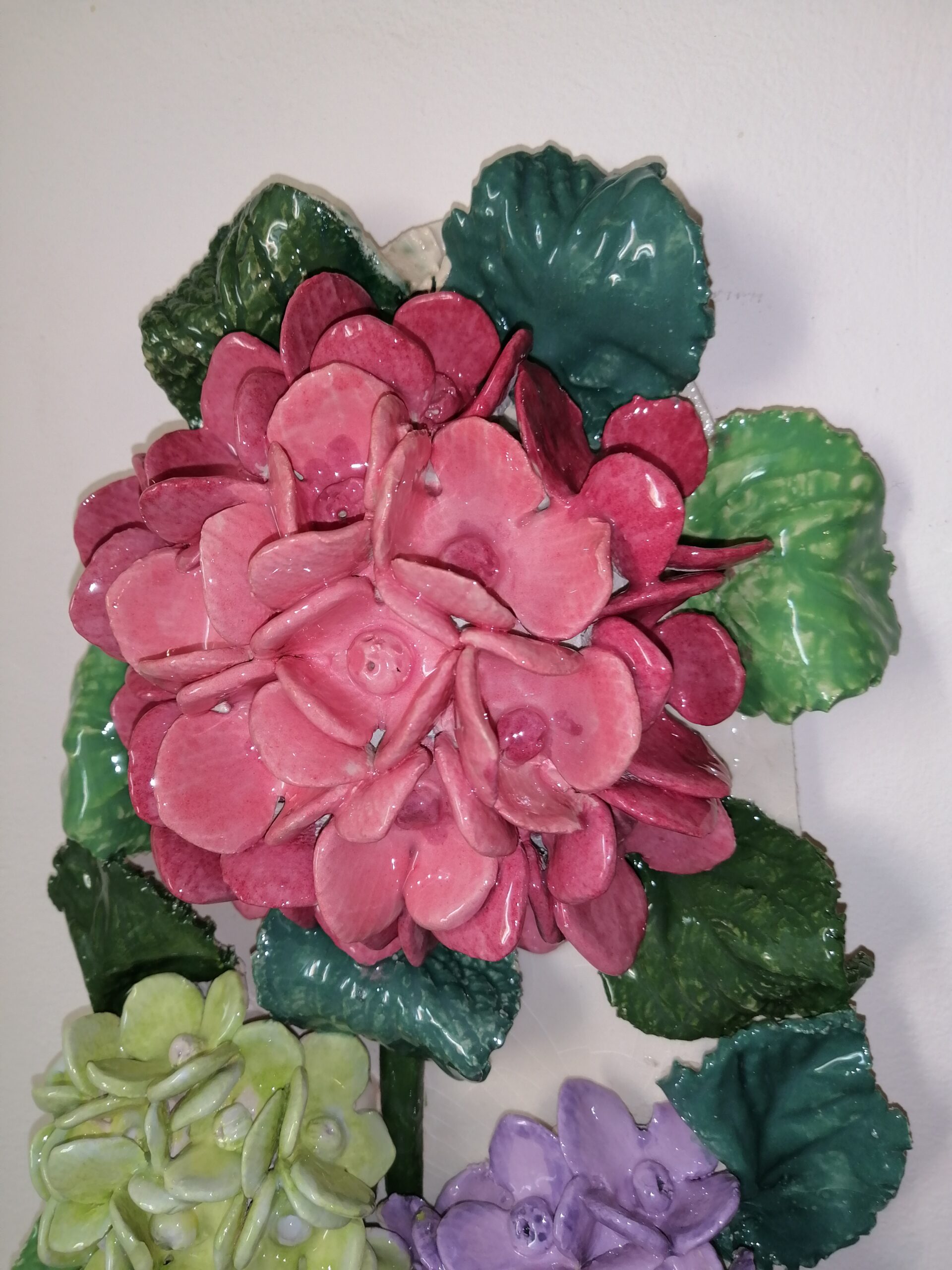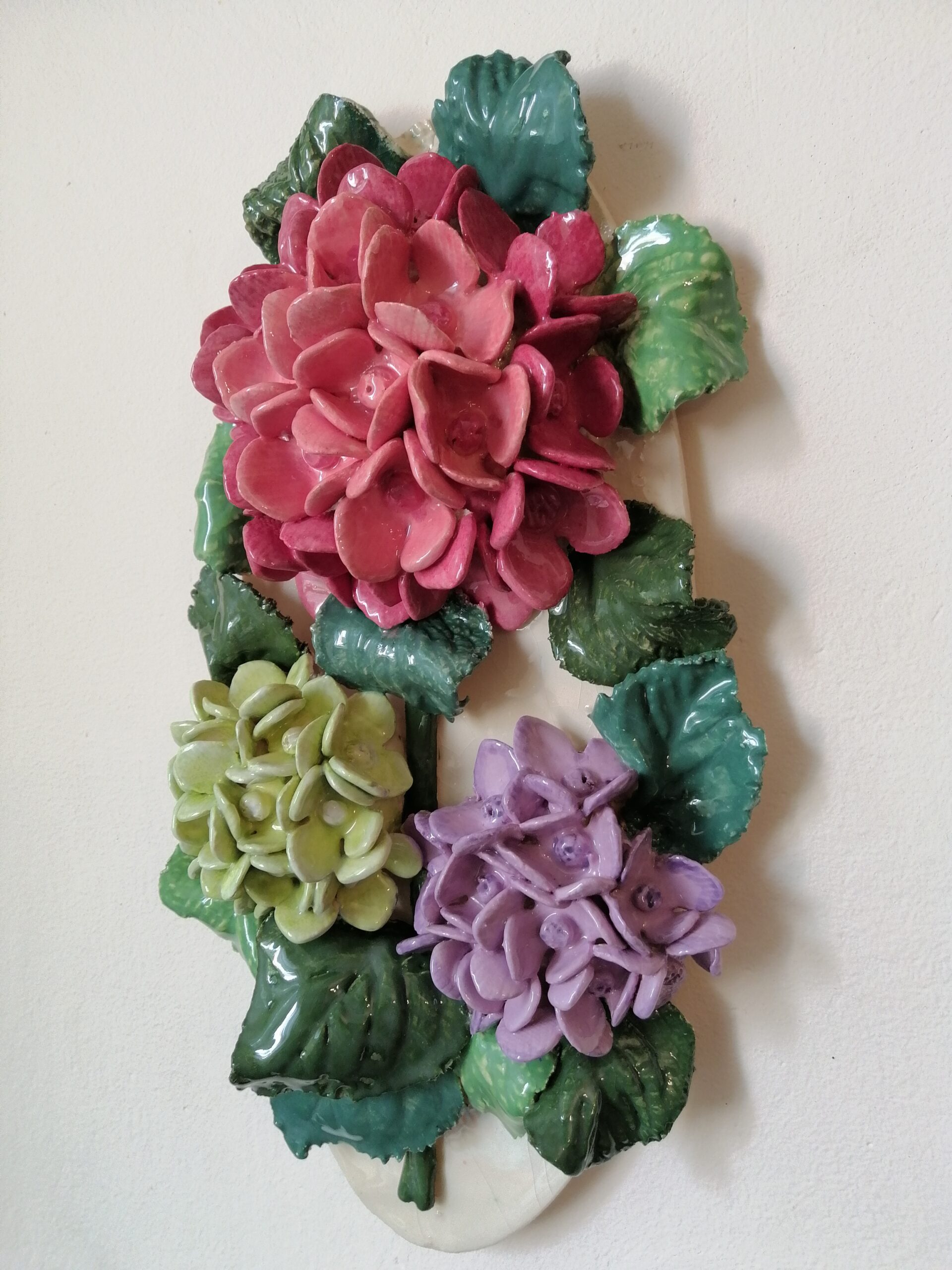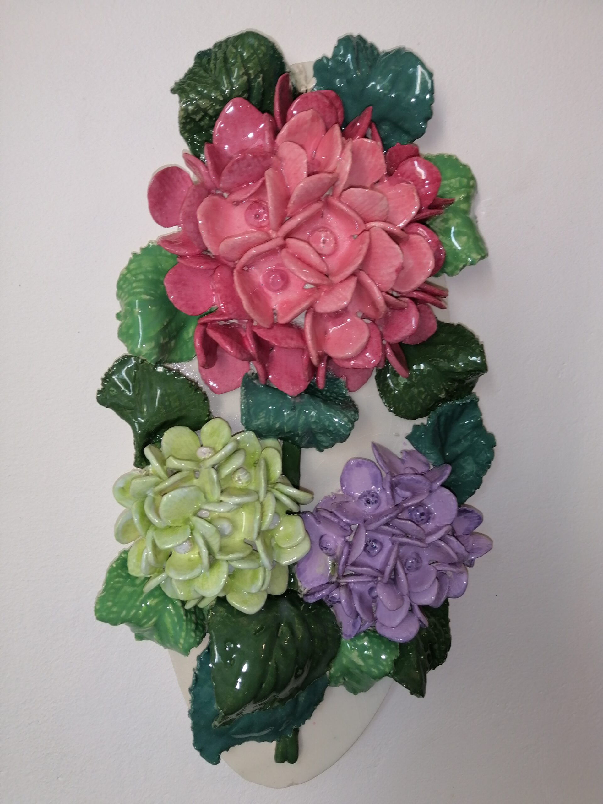 Hydrangea 3D sculptural ceramic panel, bouquet, Bohemia flowers, handmade, Still life, wall decor.
