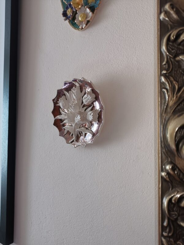 Ceramics sculptural gold rose white tulips figured plate handmade.