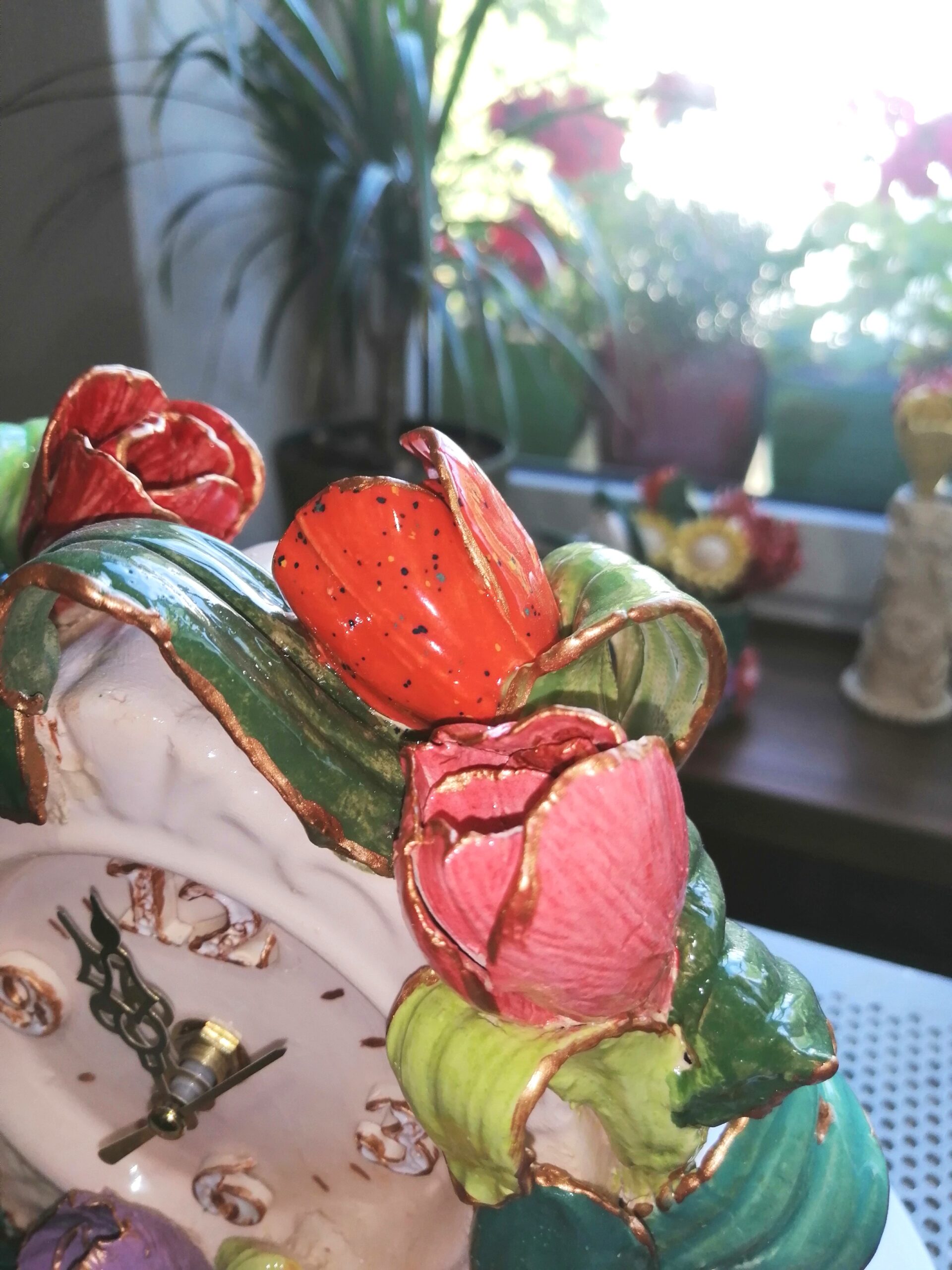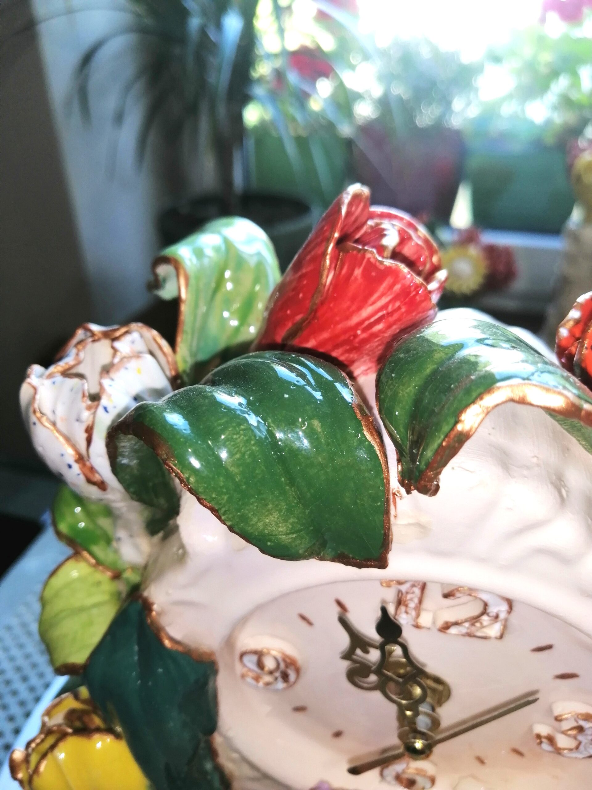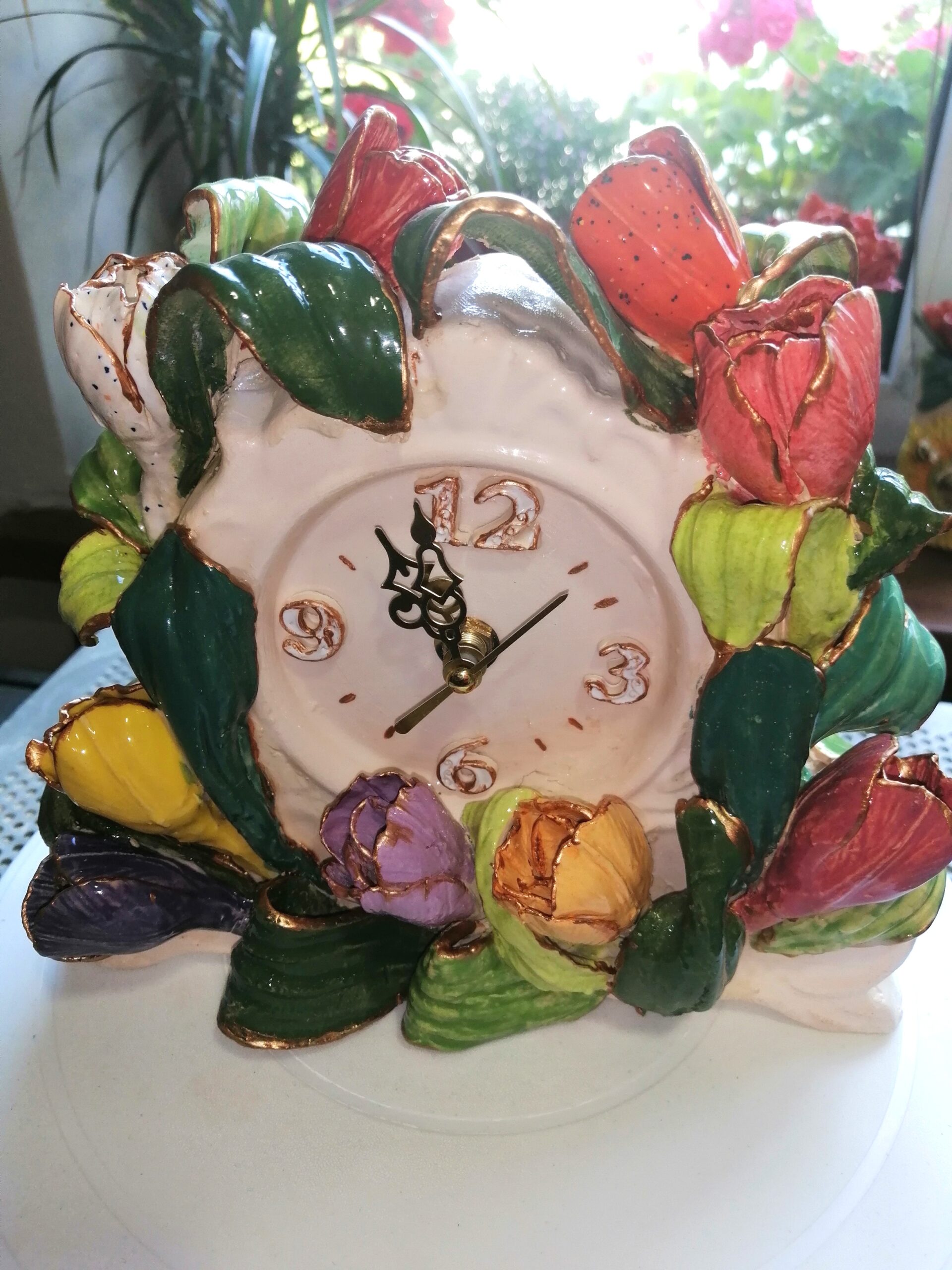 The clock was fired at above 1,000 degrees. Glaze and engobes from BOTZ were used in the production of this plate.