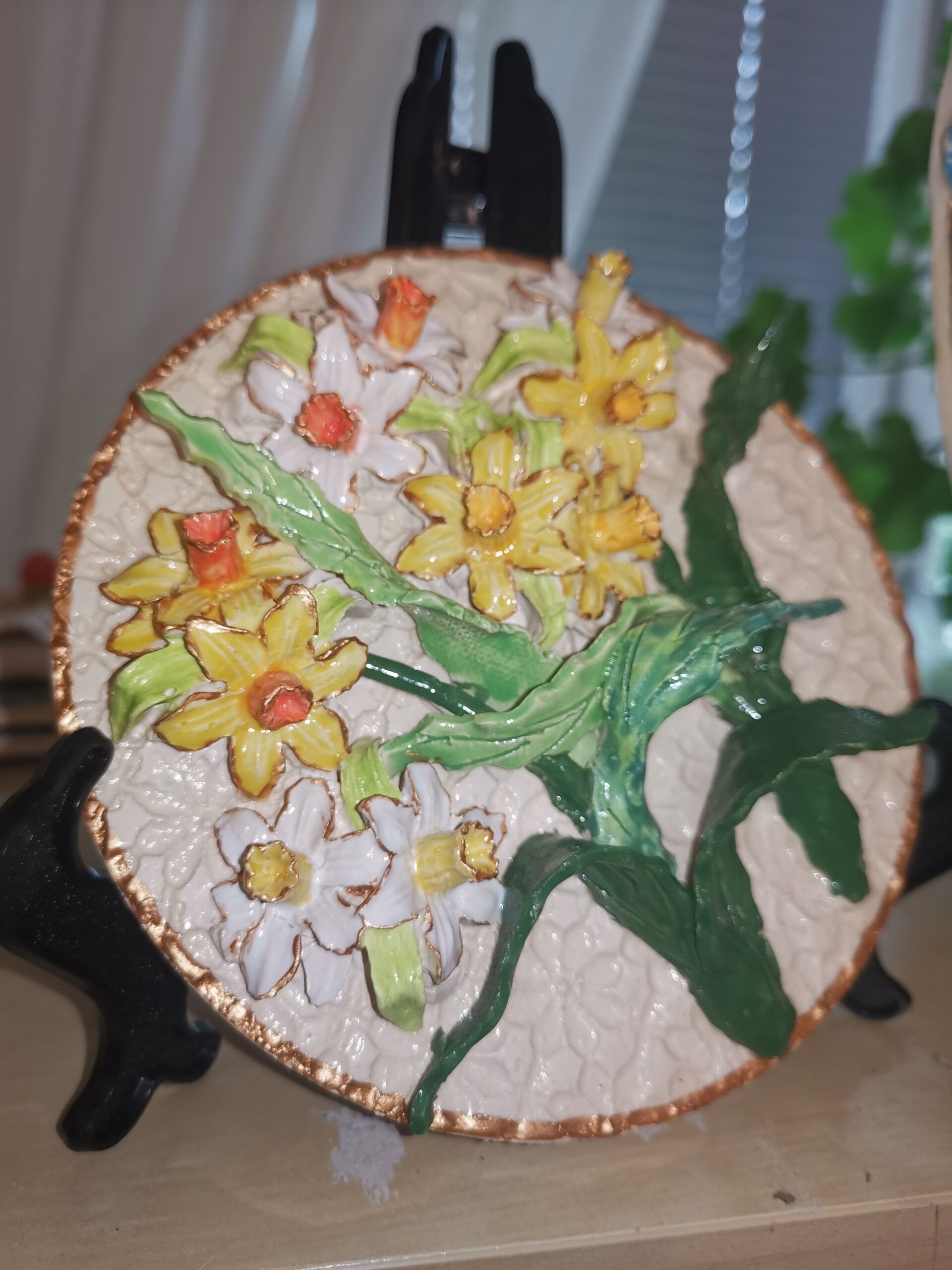 Daffodils 3D sculptural flowers ceramic plate, Size5.5inch