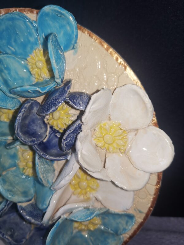 3D relief ceramic panel wild flowers, daisies, summer handmade, color therapy.