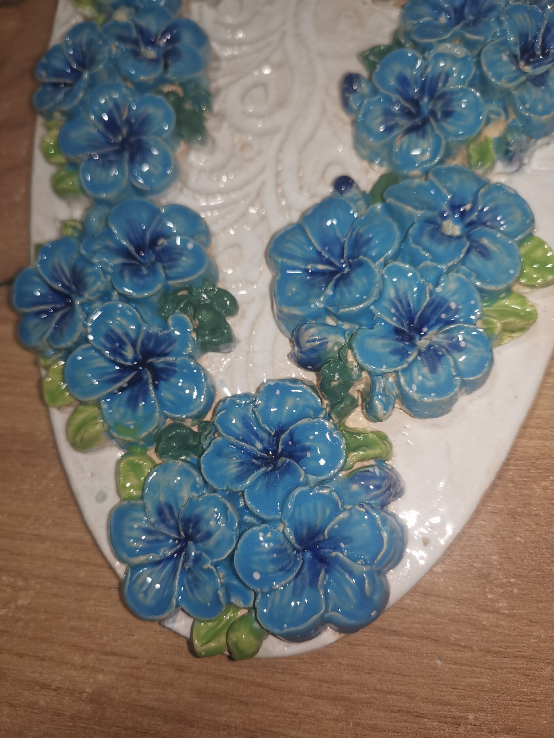 The plate was fired at 1,050 degrees. Glaze and engobes from BOTZ were used in the production of this plate.