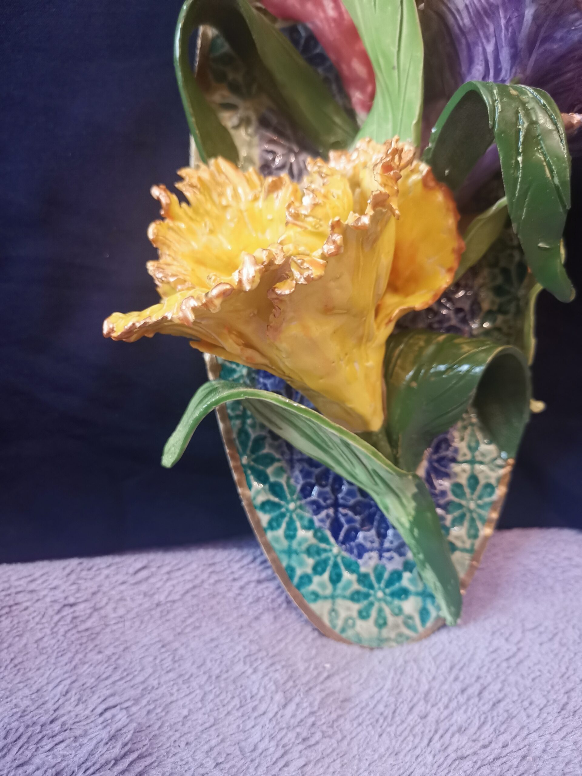 Irises 3D sculptural ceramic panel , Irises bouquet, Bohemia flowers, handmade, Still life, wall decor.