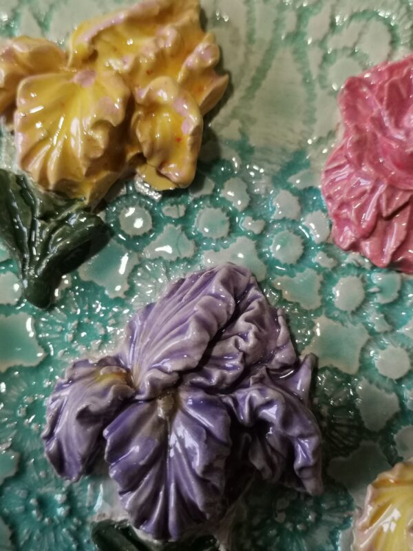 The plate was fired at above 1,000 degrees. Glaze and engobes from BOTZ were used in the production of this plate.