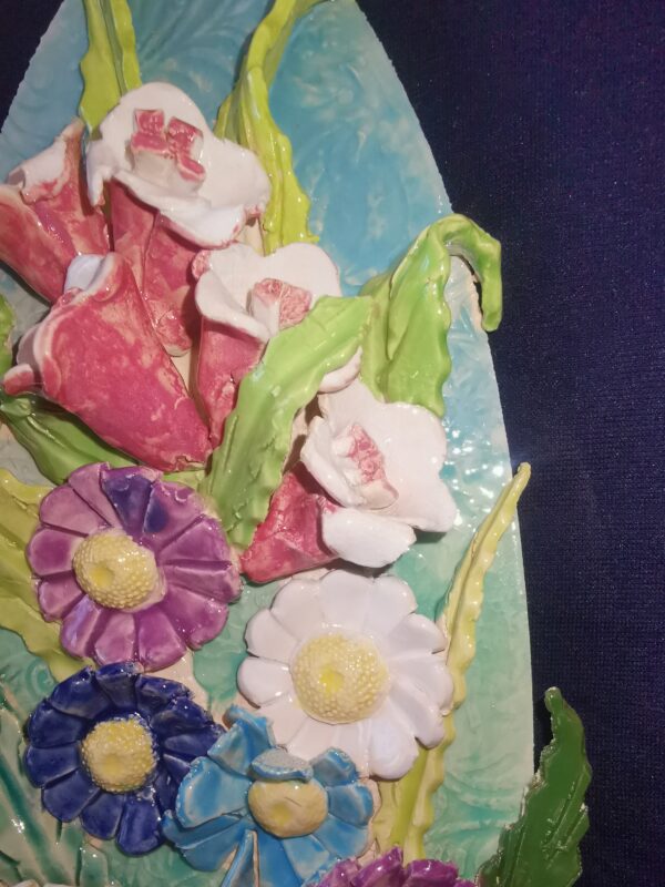 Bohemia Chamomile bells wild flowers ceramics panel, flowers bouquet, handmade, color therapy, Still life,